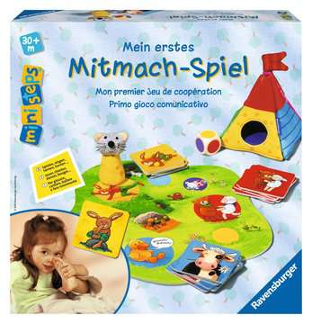 Von Ravensburger gibt ein ganz herziges (Würfel-)Spiel, das auch für Kinder in Fabios Alter geeignet ist - sprich mit einfachen Regeln und kurzer Spieldauer. Es heisst "mein erstes Mitmachspiel" und sieht so aus: